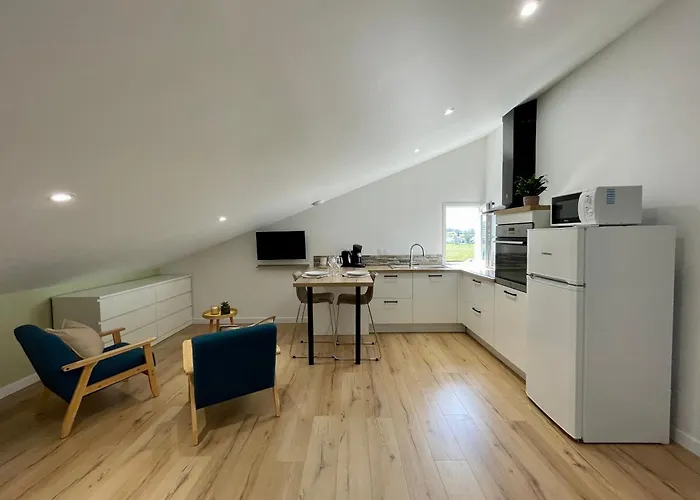 Wenn Sie einen frühen Flug aus Saint-Palais haben, liegt die 34 m^2 große Ferienwohnung Studio A Saint-Palais Avec Parking 65 km vom Flughafen Biarritz entfernt.